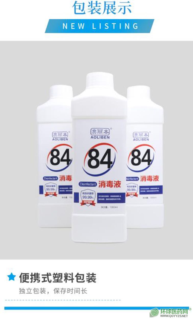 | 補(bǔ)充說(shuō)明 | 澳麗本84消毒液廣泛用于賓館、旅游、醫(yī)院、食品加工行業(yè)、家庭等的衛(wèi)生消毒。 |