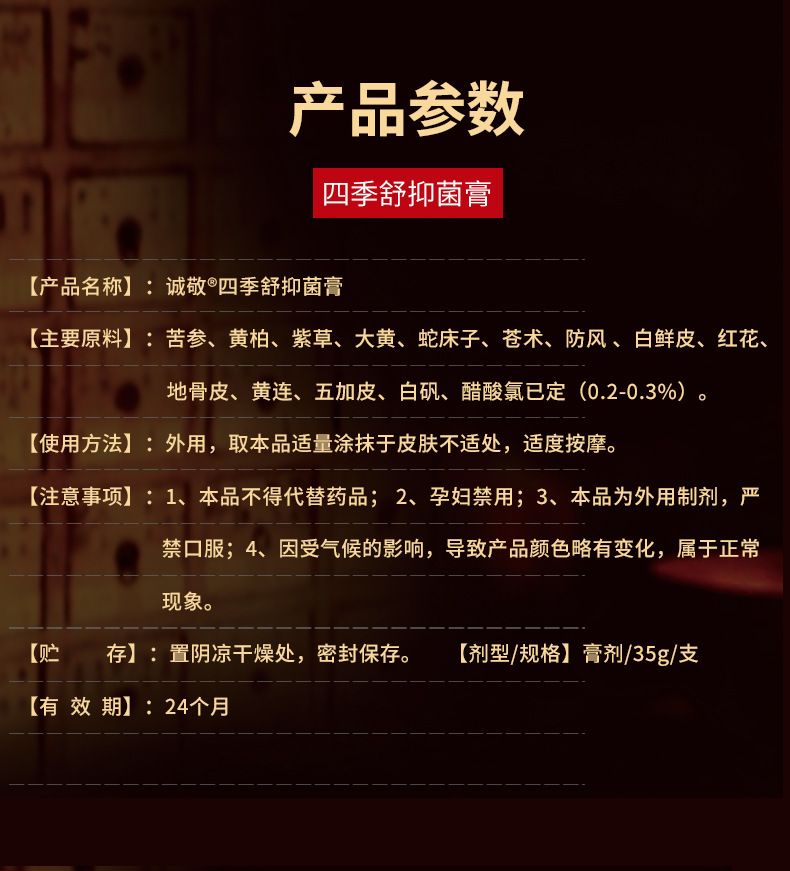 | 產(chǎn)品名稱 | 誠敬四季舒抑菌膏 |