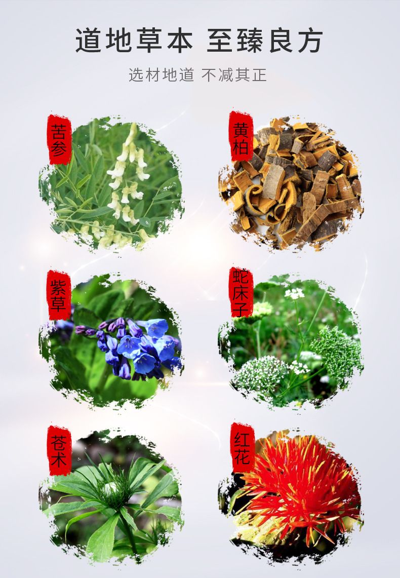 | 主要成分 | 苦參、黃柏、紫草、大黃、蛇床子、蒼術(shù)、防風(fēng)、白鮮皮、紅花、地骨皮、黃連、五加皮、醋酸氯己定。 |