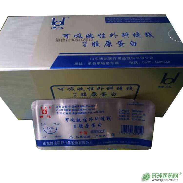 | 產品用途 | 手術縫合不過敏可吸收博達75cm帶針PGA線 該線是由韓國進口的聚乙醇酸縫合線和日本進口的醫(yī)用縫合針鏈接而成?p合線以聚乙醇酸(PolyglycolicAcid,簡稱PGA)為原料,結構為多股編織,涂層采用硬脂酸鈣(Calciumstearate),縫合線染色以D&C紫羅蘭2號作染料(D&CVioletNo.2),縫合針采用全進口不銹鋼絲加工而成。一次性使用產品,環(huán)氧乙烷滅菌。 |