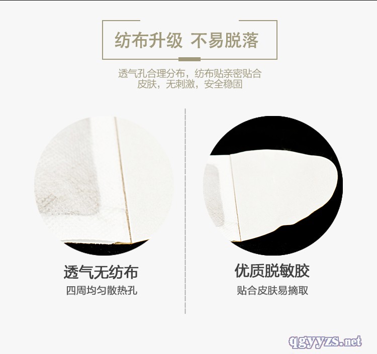 | 主要成分 | 該產(chǎn)品由含有遠(yuǎn)紅外陶瓷粉的敷膜無(wú)紡布、壓敏膠、發(fā)熱袋與硅油紙組成。 |
