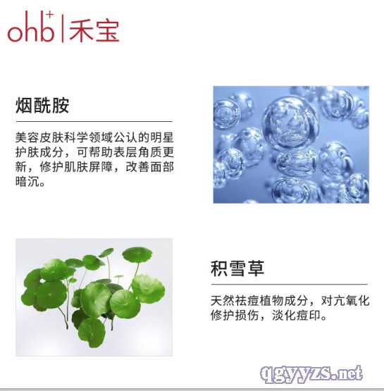 | 產品用途 | 對抗痘痘誘因,減少痘痘發(fā)生 舒緩修復傷口,增強肌膚平衡機能 平衡油脂分泌,暢通毛孔 淡印修痕,幫助平滑痘肌 |
