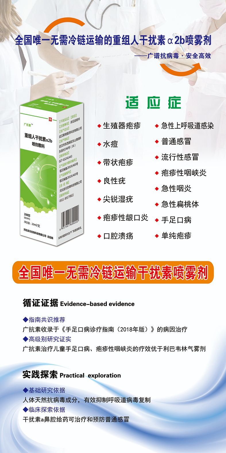 | 補(bǔ)充說明 | 全國**無需冷鏈運(yùn)輸?shù)母蓴_素噴霧劑,廣譜抗病毒。李經(jīng)理:18875721666 |