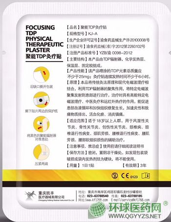 | 補(bǔ)充說(shuō)明 | 適于18歲以上人群,用于風(fēng)濕性關(guān)節(jié)炎、骨性關(guān)節(jié)炎、創(chuàng)傷性關(guān)節(jié)炎、頸椎病、頸椎退行性病變、頸肌勞損、腰椎退行性病變、腰肌勞損、腰部軟組織損傷的輔助治療 |