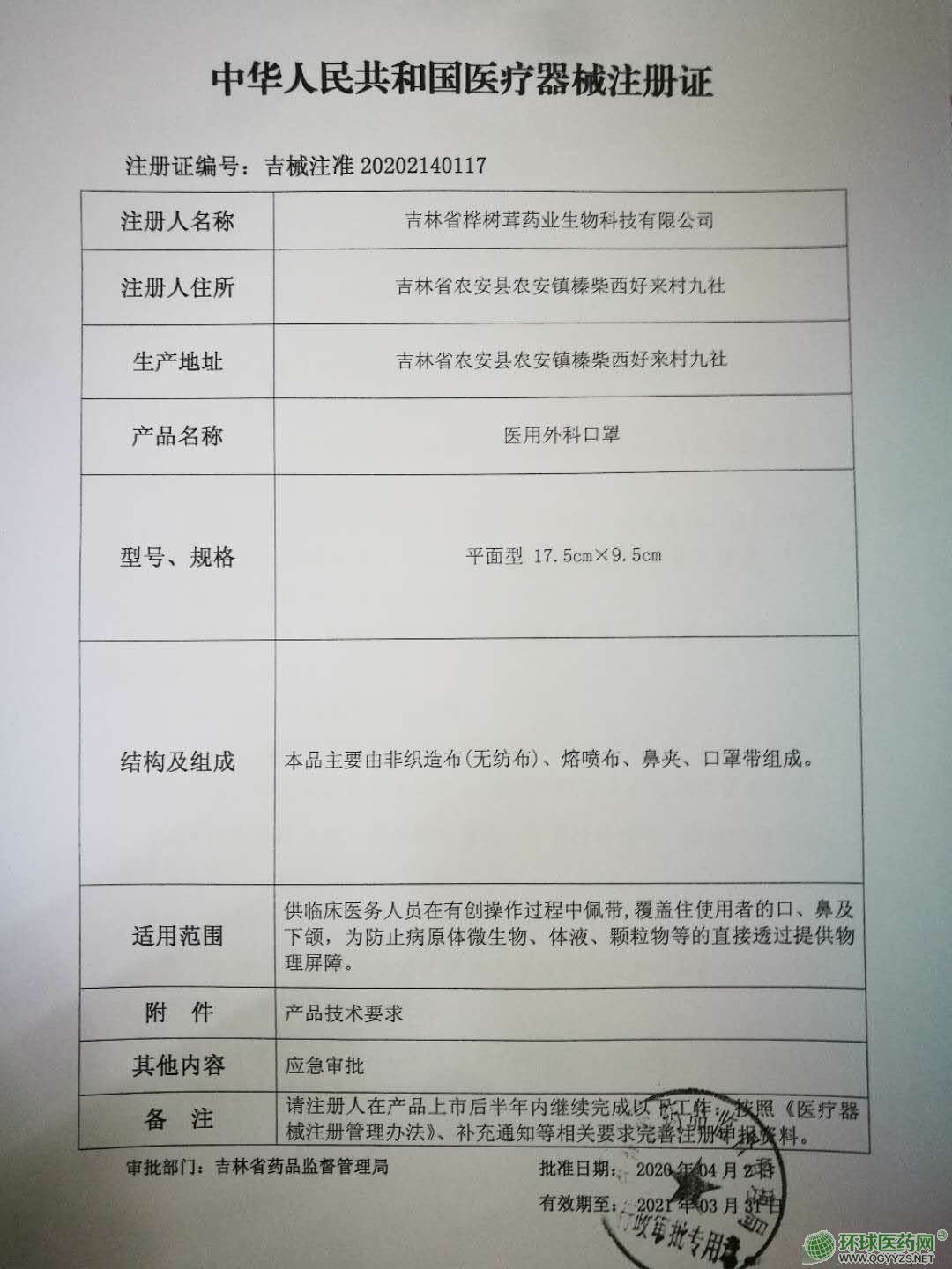 批準(zhǔn)文號(hào): 吉械注準(zhǔn)20202140117 【驗(yàn)證真?zhèn)?/a>】
