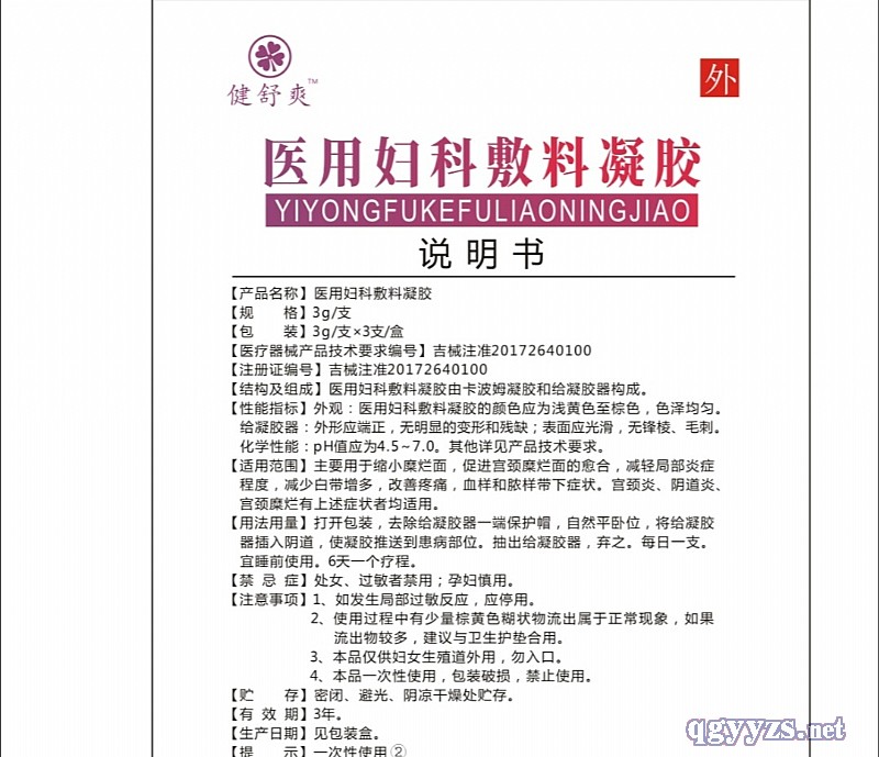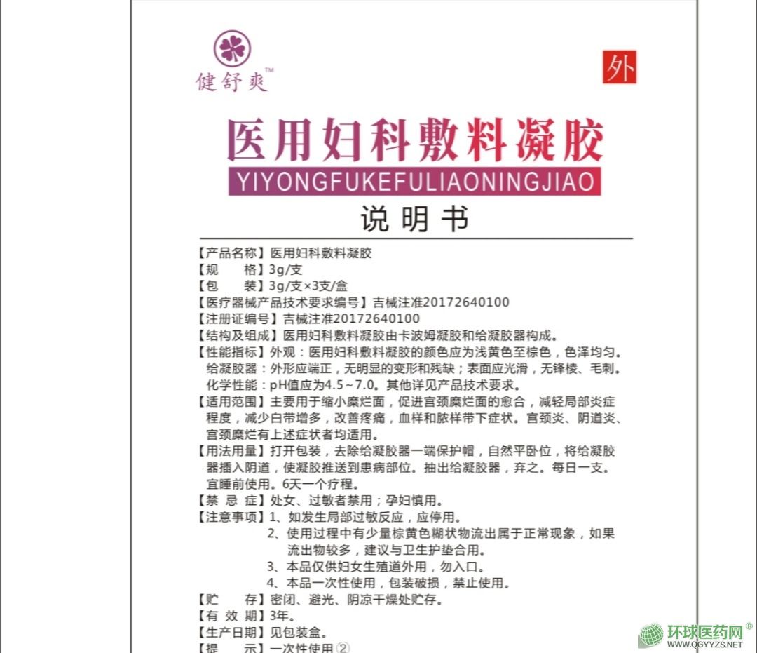 產(chǎn)品名稱: “健舒爽”醫(yī)用婦科敷料凝膠