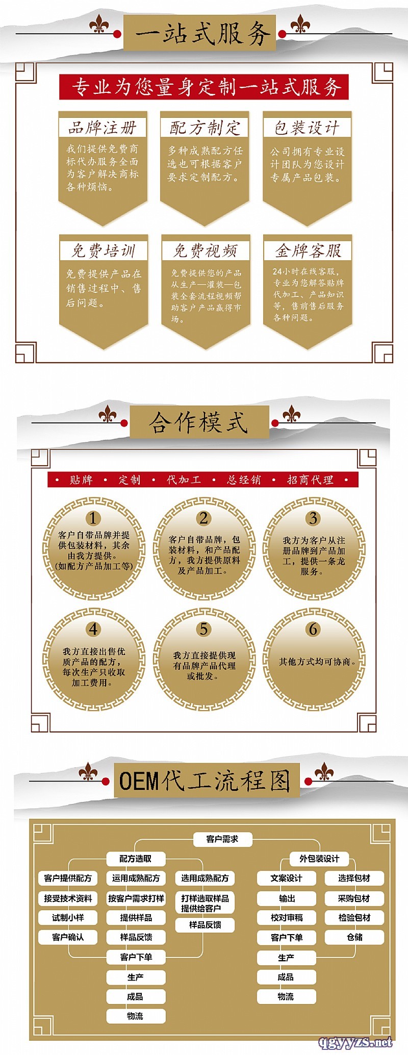 - 美芙康生物為您提供完整的OEM貼牌加工服務(wù),產(chǎn)品策劃(劑型、配方、工藝制定)、商標(biāo)注冊、專利申報、包裝設(shè)計、產(chǎn)品注冊備案審批、下單生產(chǎn)、檢驗出廠、全程無憂一件代發(fā)。膏滋,固體飲料,袋用茶,壓片糖果等