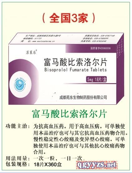【藥品名稱】通用名稱:富馬酸比索洛爾片