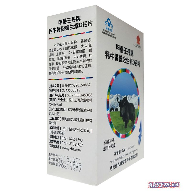 | 主要成分 | 牦牛骨粉,乳酸鈣,維生素d等 |