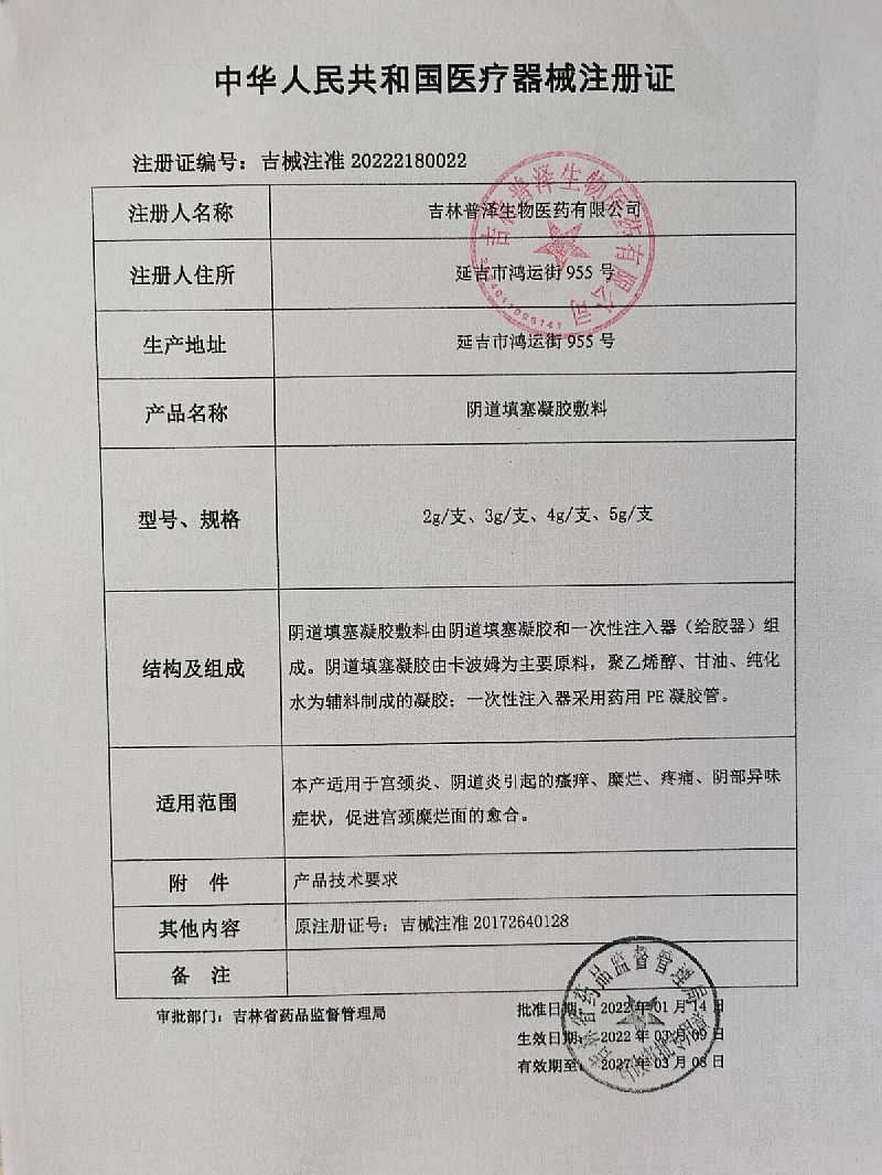 | 產(chǎn)品名稱 | 陰道填塞凝膠敷料 |