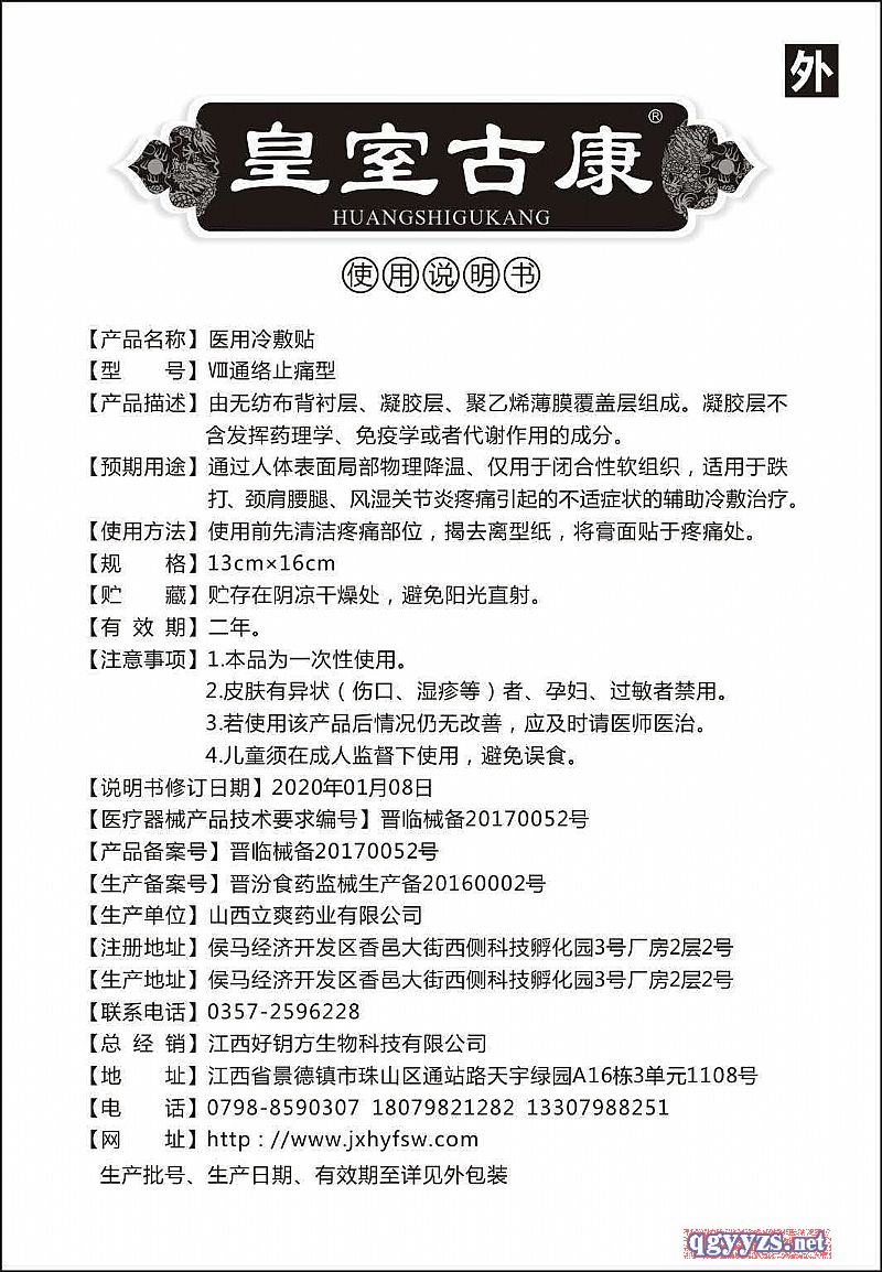 | 補充說明 | 皇室古康 [產(chǎn)品名稱]醫(yī)用冷敷貼 [型 號]通絡(luò)止痛型 |
