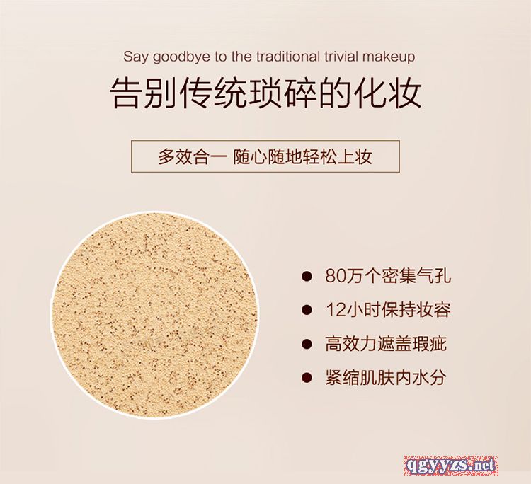 | 產(chǎn)品用途 | 八大功效,打造裸肌:1舒緩、2美肌、3持久、4修顏、5冰爽、6隔離、7保濕、8防汗 持久不脫妝,自然遮蓋瑕疵,靚麗水光肌 |