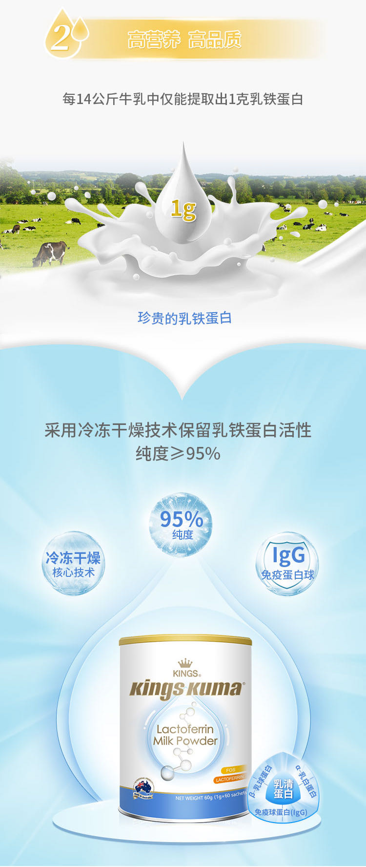| 主要成分 | 脫脂奶粉、乳清蛋白粉、乳鐵蛋白、低聚果糖 |