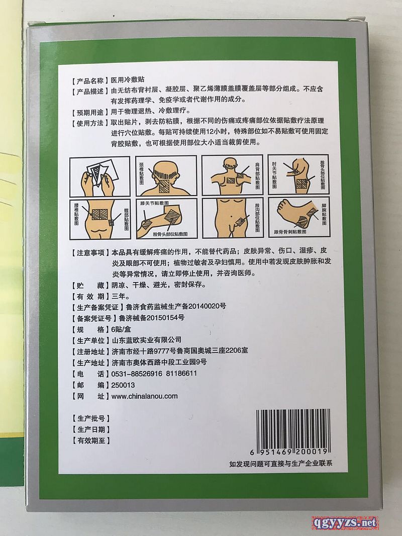 | 使用方法 | 取出貼片,剝?nèi)シ勒衬,根?jù)不同的傷痛或疼痛部位根據(jù)貼敷療法原理進(jìn)行穴位貼敷。每貼可持續(xù)使用12個(gè)小時(shí),特殊部位如不易貼敷可使用固定的背膠貼敷,可根據(jù)使用部位大小進(jìn)行適當(dāng)剪裁使用。 |