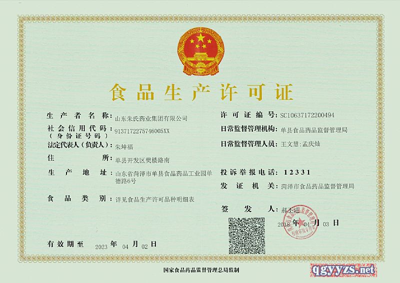 生產(chǎn)企業(yè): 山東朱氏藥業(yè)集團(tuán)有限公司