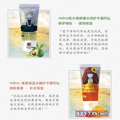 | 補充說明 | 秋冬季節(jié),我們在注意面部皮膚保養(yǎng)的同時,也不能忘了對手部的保養(yǎng)護理。然而,很多人對護手霜還不是很了解,不知道護手霜到底哪個牌子好用。今天,小編將為大家介紹一下物美價廉的護手霜,相信大家看了后會對護手霜使用和品牌有一定的了解了。 1.選購潔手用品時,應注意成分中以含維生素E和維生素B為主的,要避免購買堿性過強的產(chǎn)品。 2.白天出門前,除了必須涂上面部防曬品之外,手部好也涂上有SPF防曬系列的產(chǎn)品,以防紫外光傷害,曬出皺紋和黑斑來。 3.當你洗碗、洗衣服時要接觸化學產(chǎn)品,切記要先戴好手套,避免雙手被清潔劑的皂堿傷害。 4.每星期做一次手部去角質(zhì)的工作,使用手部專用的磨砂用品來去掉老化的角質(zhì)層,讓雙手恢復光滑。 5.利用睡眠時間來加強手部滋養(yǎng),臨睡前涂上滋潤力較強的潤手霜,并戴上透氣度高的手套以利吸收。 6.涂抹護手霜時,可對手指個關(guān)節(jié)部分進行加強揉搓。 |