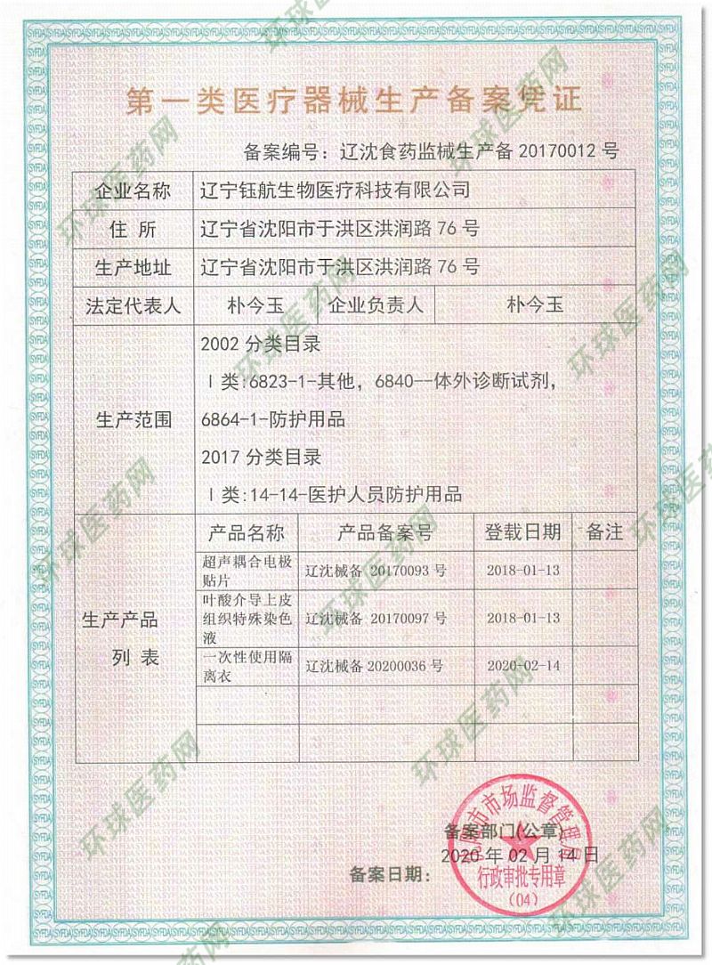 生產(chǎn)企業(yè): 遼寧鈺航生物醫(yī)療科技有限公司