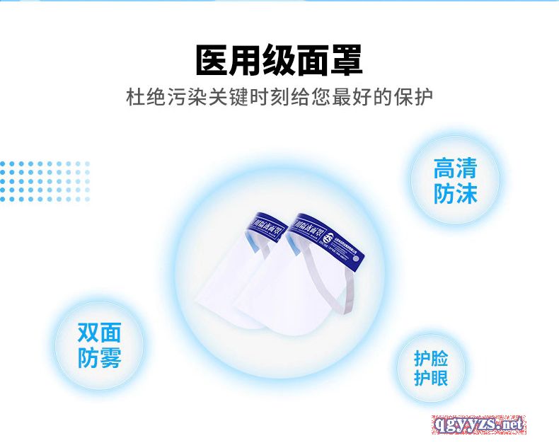 | 補(bǔ)充說明 | 醫(yī)用級面罩 杜絕污染關(guān)鍵時(shí)刻給您*好的防護(hù) 雙面防霧 護(hù)眼護(hù)臉 高清防沫 |