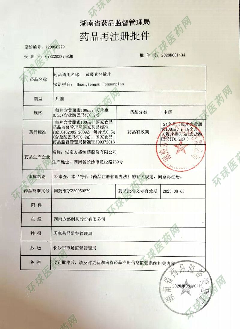 | 通用名稱 | 黃藤素分散片 |