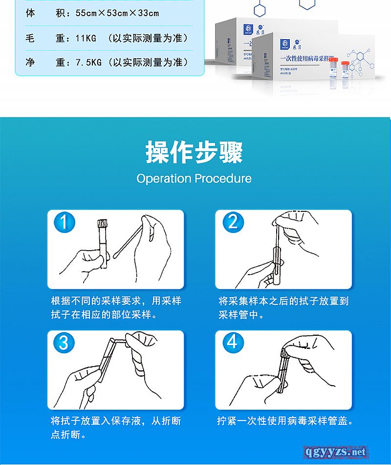 | 使用方法 | 1.取樣前,在標(biāo)簽上注明樣品信息。 2.根據(jù)不同的實(shí)驗(yàn)?zāi)康模萌邮米釉谙鄳?yīng)部位取樣。 3.取樣后,迅速將拭子放入無菌一次性病毒采樣管中,當(dāng)點(diǎn)處破損時(shí)將其打碎,并擰緊管蓋。 4.新收集的標(biāo)本可以在正常情況下運(yùn)送到實(shí)驗(yàn)室;取樣后,如不能及時(shí)處理,需在2-8度下存放,存放時(shí)間不得超過7天。 |