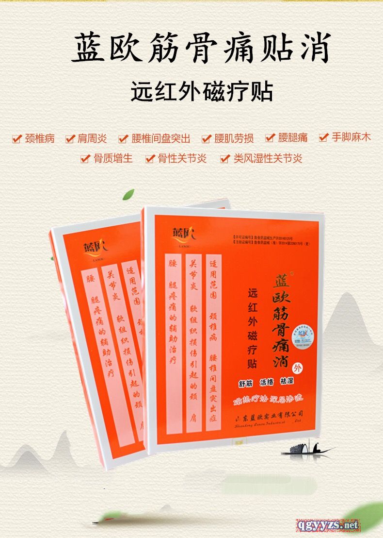 | 產(chǎn)品賣點 | 驅(qū)風(fēng)散寒、活血行氣、疏經(jīng)活絡(luò)、神筋止痛的功效,還具有滲透力強,療效**,使用方便等優(yōu)點,此藥貼對骨質(zhì)增生,腰椎間盤突出,風(fēng)濕、類風(fēng)濕性關(guān)節(jié)炎,坐骨神經(jīng)痛,腰肌勞損,跌打損傷,肩周炎、頸椎病都有**療效。 |