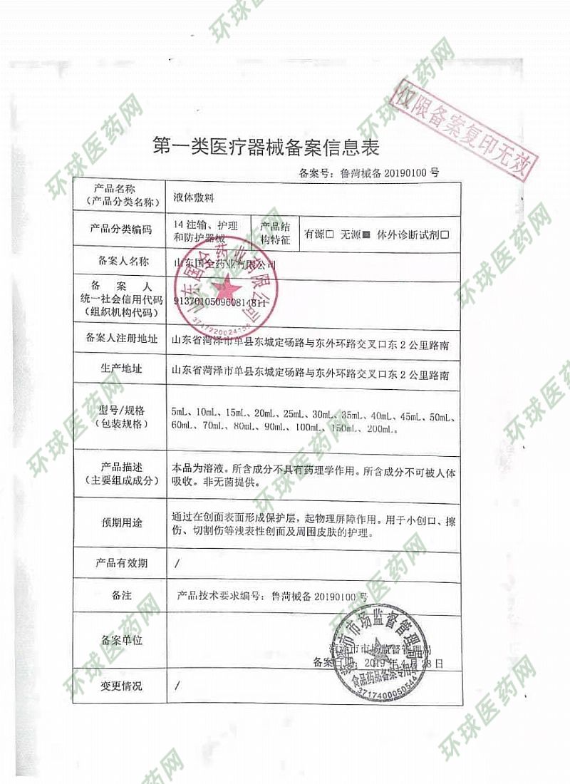 批準(zhǔn)文號(hào): 魯菏械備20190100號(hào) 【驗(yàn)證真?zhèn)?/a>】