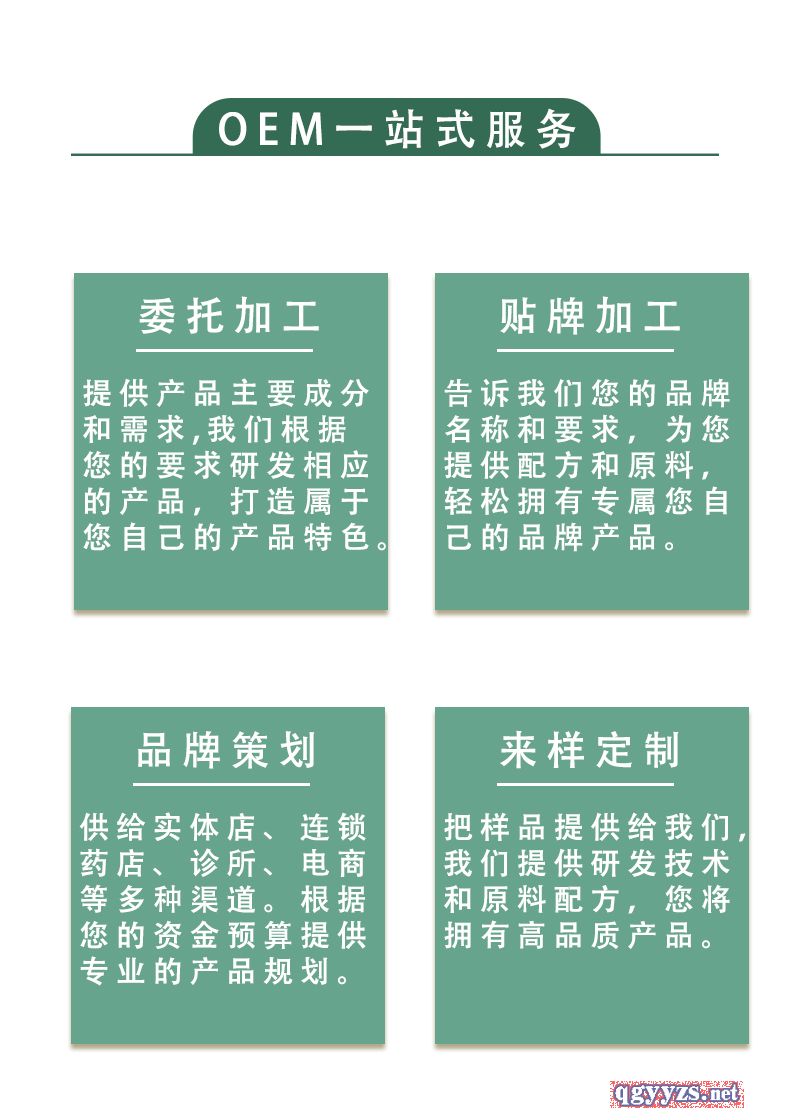 | 補(bǔ)充說(shuō)明 | 冷敷凝膠代加工 護(hù)發(fā)冷敷凝膠、筋骨冷敷凝膠、男康冷敷凝膠、前列腺冷敷凝膠、乳康冷敷凝膠、潤(rùn)目冷敷凝膠、舒眠冷敷凝膠、足康冷敷凝膠、膚康冷敷凝膠、婦康冷敷凝膠、關(guān)節(jié)肌肉冷敷凝膠等 OEM一站式服務(wù) 一、委托加工:提供產(chǎn)品主要成分和需求,我們根據(jù)您的要求研發(fā)相應(yīng)的產(chǎn)品,打造屬于您自己的產(chǎn)品特色。 二、貼牌加工:告訴我們您的品牌名稱和要求,為您提供配方和原料,輕松擁有專屬您自己的品牌產(chǎn)品。 三、品牌策劃:供給實(shí)體店、連鎖藥店、診所、電商等多種渠道。根據(jù)您的資金預(yù)算提供專業(yè)的產(chǎn)品規(guī)劃。 四、定制:把樣品提供給我們,我們提供研發(fā)技術(shù)和原料配方,您將擁有高品質(zhì)產(chǎn)品。 源頭優(yōu)勢(shì): 產(chǎn)品種類齊全,選擇多樣 細(xì)分領(lǐng)域,小產(chǎn)品,大市場(chǎng) 品質(zhì)**,正規(guī)廠家高端產(chǎn)品,選擇對(duì)的合作對(duì)象*重要 **空間大,無(wú)需市場(chǎng)**金,市場(chǎng)開(kāi)闊 渠道選擇多樣,可選擇醫(yī)院臨床藥店/OTC以及第三終端等 山東景天堂藥業(yè)有限公司:精于加工,按需定制 資質(zhì)齊全、合作無(wú)憂、誠(chéng)信合作、互惠互利 工廠擁有雄厚的技術(shù)力量,完善的生產(chǎn)設(shè)備,全程一站式服務(wù) |