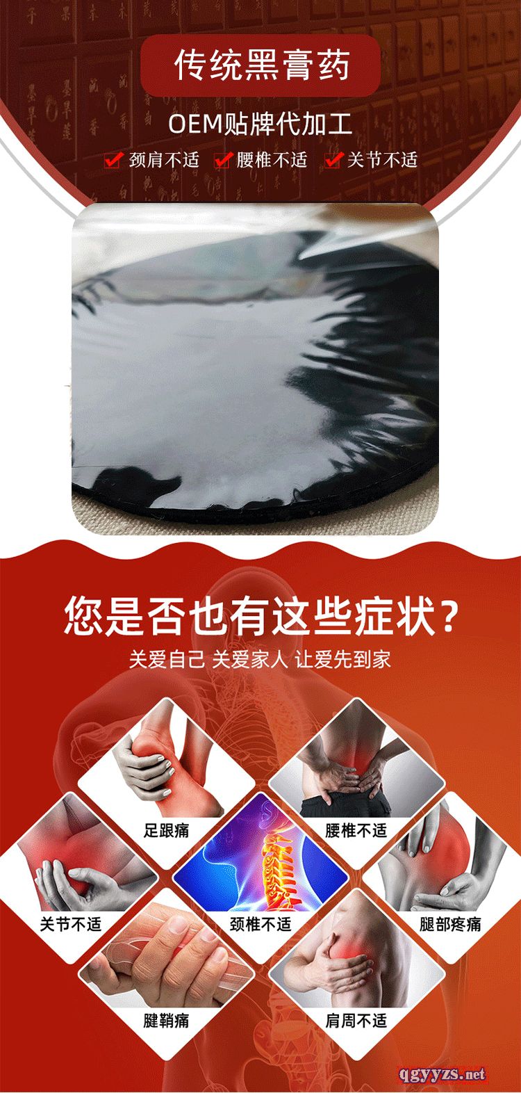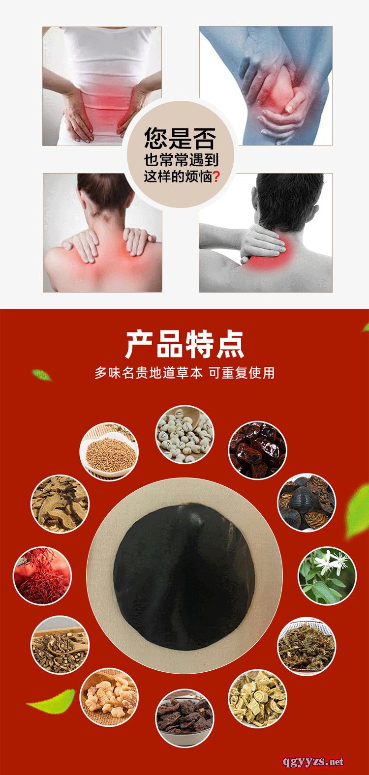 | 產(chǎn)品賣點 | 上百種中藥材熬制而成,效果看得見,對于頸肩腰腿疼痛有明顯的效果,一貼可用七天,廠家直銷,沒有中間商賺差價 |