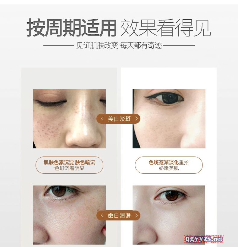 | 產(chǎn)品用途 | 草本萃取多種有效美白成分,易于吸收,能深入肌底,瓦解沉著頑固型黑色素,同時(shí)補(bǔ)充充足水分和養(yǎng)分,卓效改善暗沉斑駁黑黃肌膚,多維度提亮并均勻膚色,幫助重塑亮白潤澤、光彩四射的你其核心美白成分“熊果苷”,能夠通過抑制皮膚中酪氨酸酶的活性,阻止黑色素的形成,從而減少皮膚色素沉積,祛除色斑和雀斑,美白肌膚,迅速滲透肌膚基底層,分解沉積黑色素而不傷肌膚,肌膚表面的色斑逐漸淡化肌膚如出水芙蓉般嫩白剔透。 |