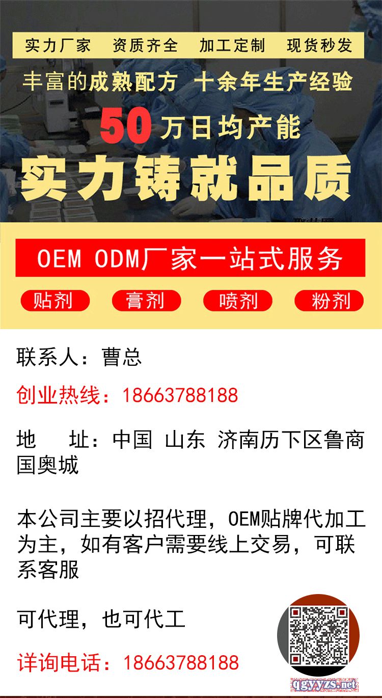 [主營產(chǎn)品]:一類械字號加工工廠 一類械字號貼牌 膏藥加工工廠 貼劑加工工廠 貼膏加工工廠 膏貼加工工廠 噴劑加工 更多>