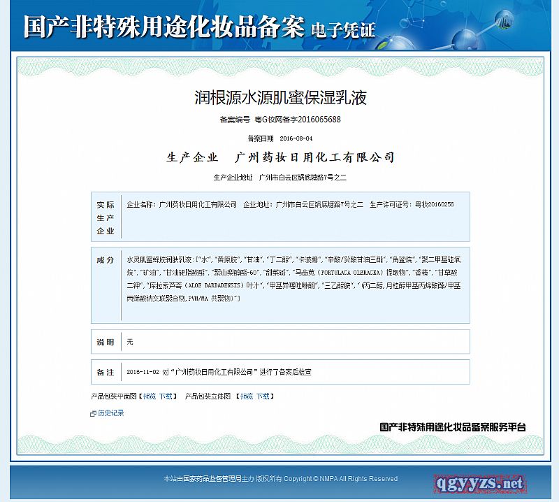 批準(zhǔn)文號(hào): 粵G妝網(wǎng)備字2016065688 【驗(yàn)證真?zhèn)?/a>】