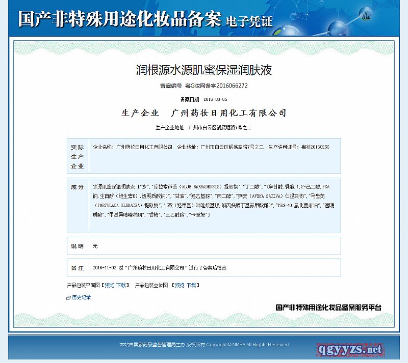 批準(zhǔn)文號(hào): 粵G妝網(wǎng)備字2016066272 【驗(yàn)證真?zhèn)?/a>】