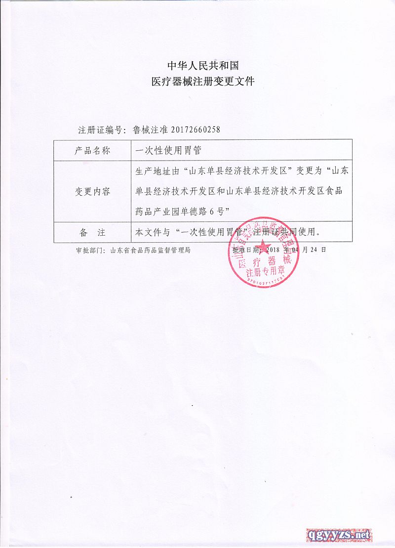 | 產(chǎn)品名稱 | 一次性使用單腔胃管 |