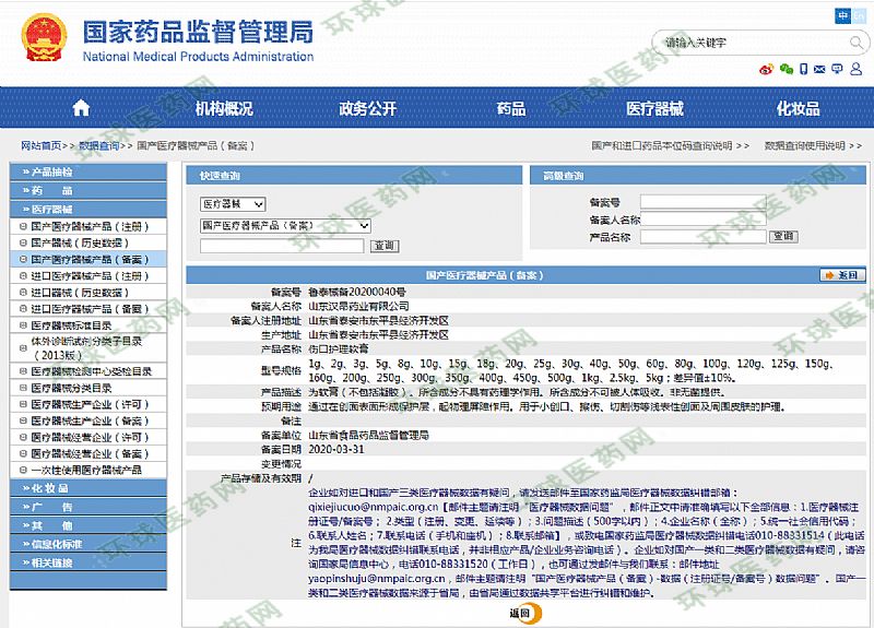 批準(zhǔn)文號: 魯泰械備20200040號 【驗(yàn)證真?zhèn)?/a>】