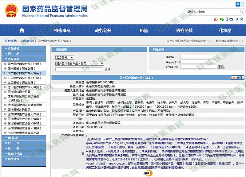 批準(zhǔn)文號(hào): 魯泰械備20200104號(hào) 【驗(yàn)證真?zhèn)?/a>】