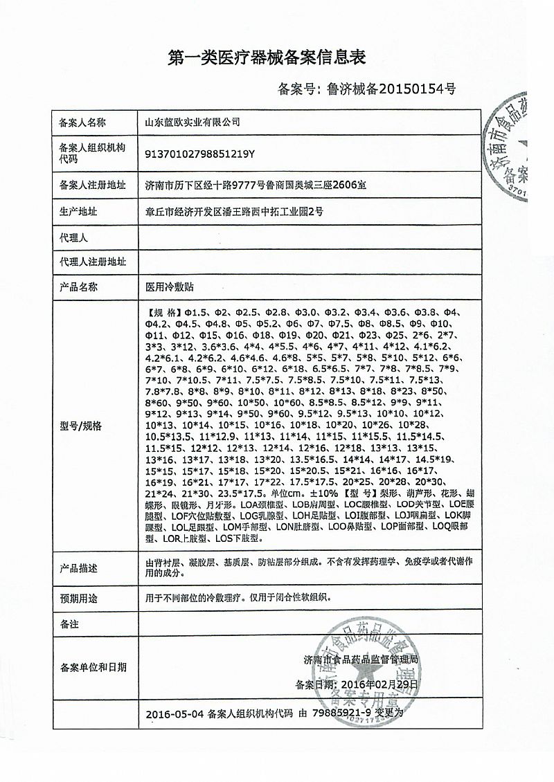 批準文號: 魯濟械備20150154號 【驗證真?zhèn)?/a>】