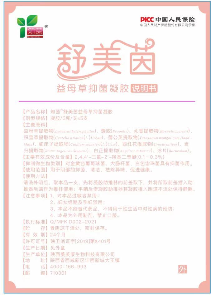 產(chǎn)品名稱: 知茵®;舒美茵益母草婦科凝膠