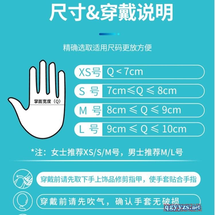 | 使用方法 | 本產(chǎn)品不分左右手,請選擇適合本人手型規(guī)格的手套; 穿戴手套時,不得戴戒指或其他飾物,注意修剪指甲; 本產(chǎn)品限一次性使用;使用后的產(chǎn)品請按醫(yī)療垃圾處理,防止病菌對環(huán)境污染; 嚴(yán)禁陽光或紫外線等強烈光線直接照射。 |