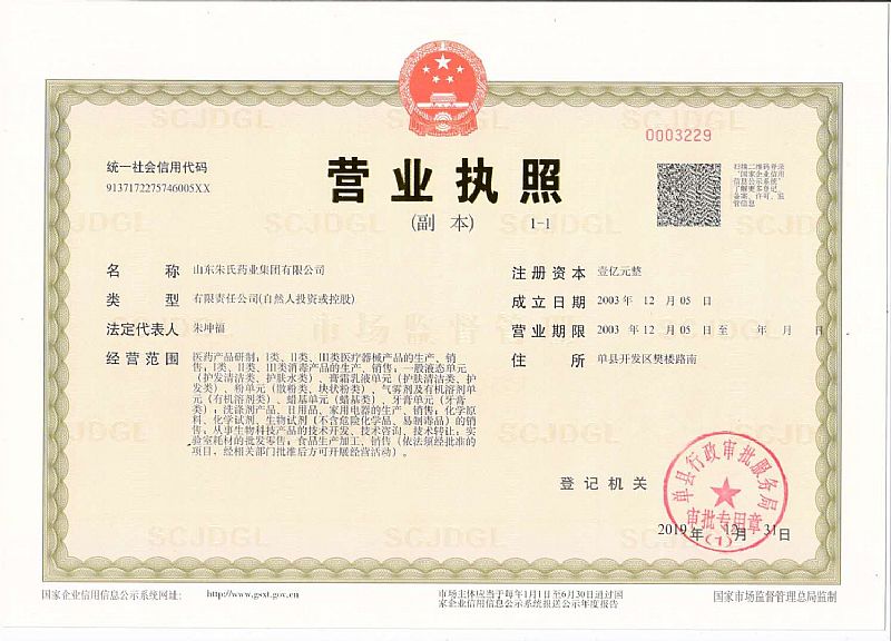 生產(chǎn)企業(yè): 山東朱氏藥業(yè)集團(tuán)有限公司