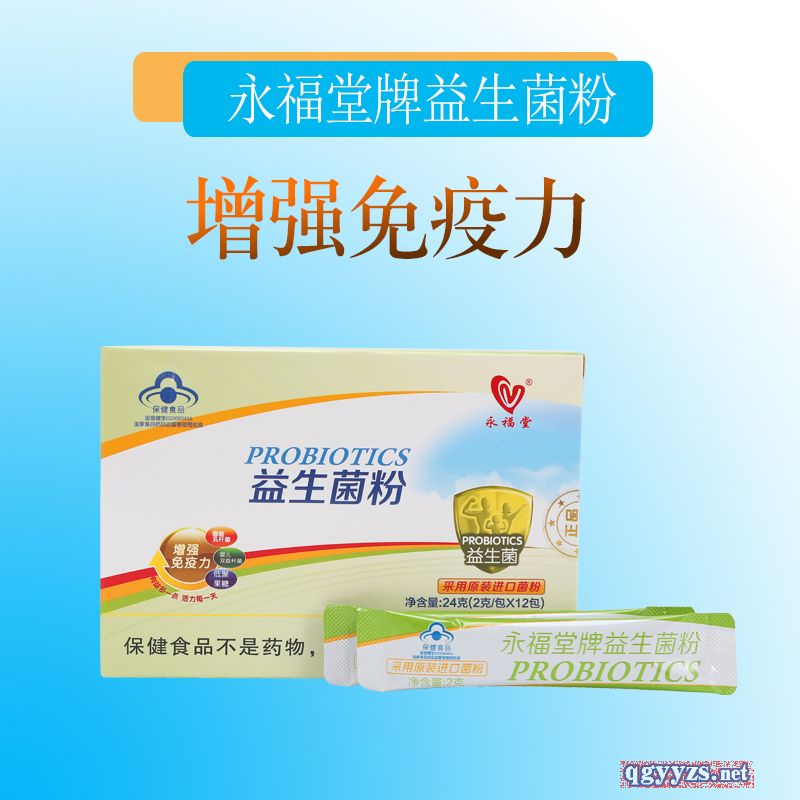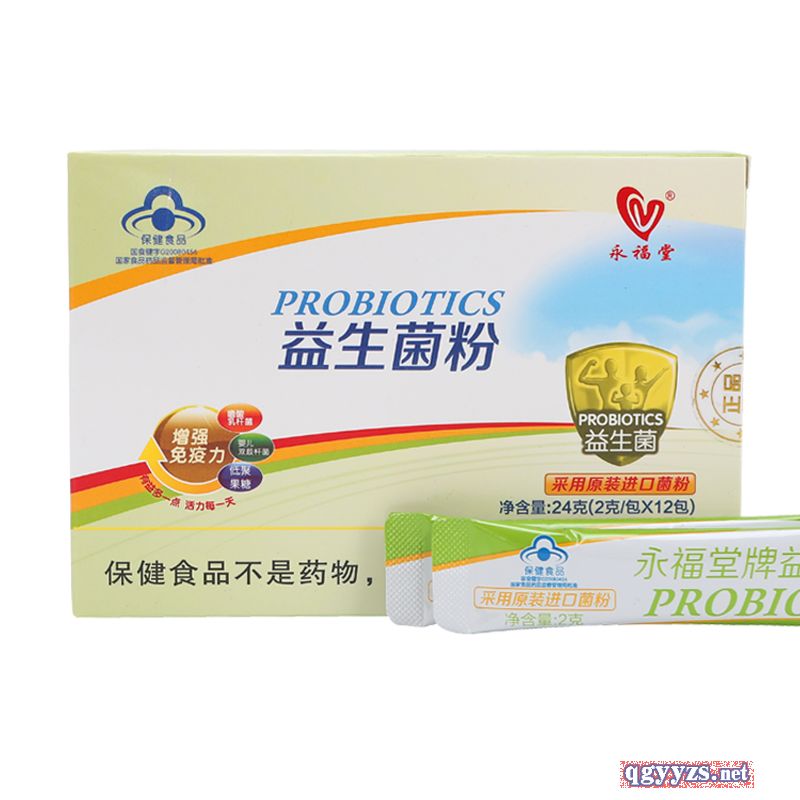 | 作用機(jī)理 | 本品是以嬰兒雙歧桿菌凍干粉、嗜酸乳桿菌凍干粉、低聚果糖、麥芽糊精為主要原料制成的保健食品,經(jīng)動(dòng)物功能試驗(yàn)證明,具有增強(qiáng)免疫力的保健功能。 產(chǎn)品名稱:永福堂牌益生菌粉 主要原料:嬰兒雙歧桿菌凍干粉、嗜酸乳桿菌凍干粉、低聚果糖、麥芽糊精 功效成分/標(biāo)志性成分含量:每100g含:嬰兒雙歧桿菌1.0x108cfu、嗜酸乳桿菌1.0x108cfu 保健功能:本品經(jīng)動(dòng)物實(shí)驗(yàn)評(píng)價(jià),具有增強(qiáng)免疫力的保健功能 |