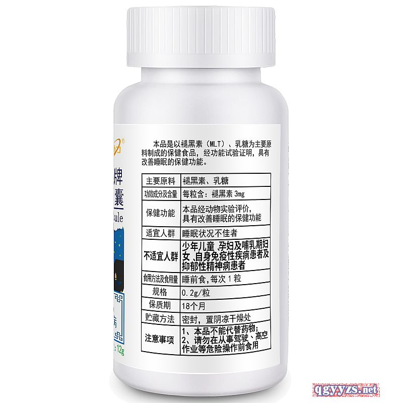 | 主要成分 | 【功效成分及含量】每粒含:褪黑素3mg |