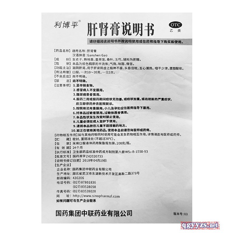 通用名稱: 肝腎膏