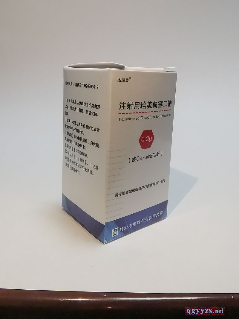 | 用法用量 | 本品的推薦劑量為500mg/m2體表面積(BSA),靜脈輸注10分鐘以上。每21天為一周期,在每周期的第1天給藥。順鉑的推薦劑量為75mg/m2BSA,靜脈輸注時(shí)間應(yīng)超過2小時(shí),應(yīng)在21天周期的第1天培美曲塞給藥結(jié)束約30分鐘后再給予順鉑。接受順鉑治療之前和/或之后要有適宜的水化方案(具體給藥建議可參見順鉑說明書)。對(duì)于既往接受過化療的非小細(xì)胞肺癌患者,本品的推薦劑量為500mg/m2BSA,靜脈輸注10分鐘以上。每21天為一周期,在每周期的第2天給藥。 |