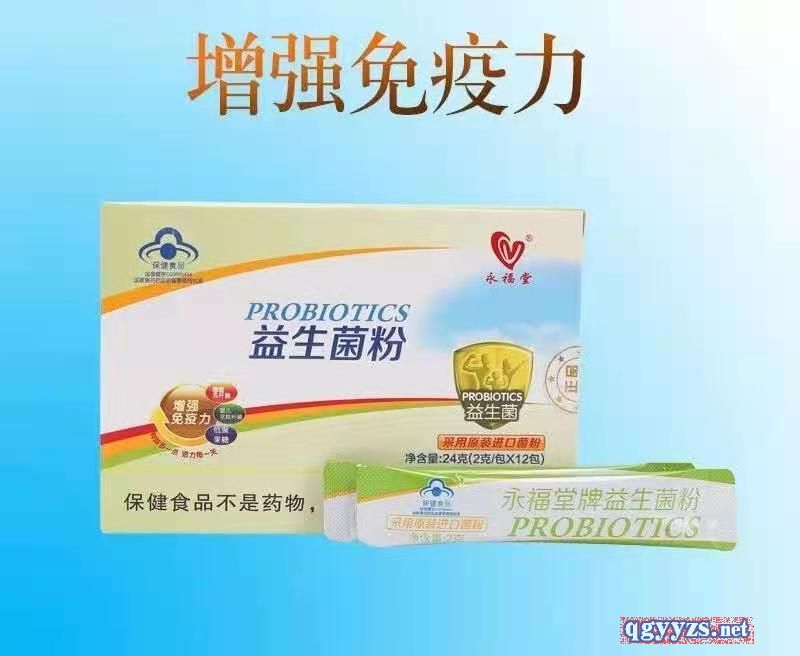 | 作用機理 | 本品是以嬰兒雙歧桿菌凍干粉、嗜酸乳桿菌凍干粉、低聚果糖、麥芽糊精為主要原料制成的保健食品,經(jīng)動物功能試驗證明,具有增強免疫力的保健功能。 產(chǎn)品名稱:永福堂牌益生菌粉 主要原料:嬰兒雙歧桿菌凍干粉、嗜酸乳桿菌凍干粉、低聚果糖、麥芽糊精 功效成分/標志性成分含量:每100g含:嬰兒雙歧桿菌1.0x108cfu、嗜酸乳桿菌1.0x108cfu 保健功能:本品經(jīng)動物實驗評價,具有增強免疫力的保健功能 適宜人群:免疫力低下者 不適宜人群:嬰幼兒 食用方法及食用量:每日2次,每次1袋,溫開水沖食 產(chǎn)品規(guī)格:2g/袋 保質(zhì)期:15個月 執(zhí)行標準:Q/AK0003S 儲藏方法:陰涼干燥處保存,冷藏保存效果更佳 注意事項:本品不能代替藥物 |