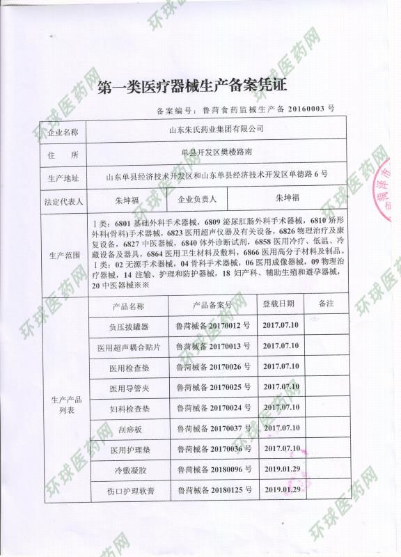 生產(chǎn)企業(yè): 山東朱氏藥業(yè)集團有限公司
