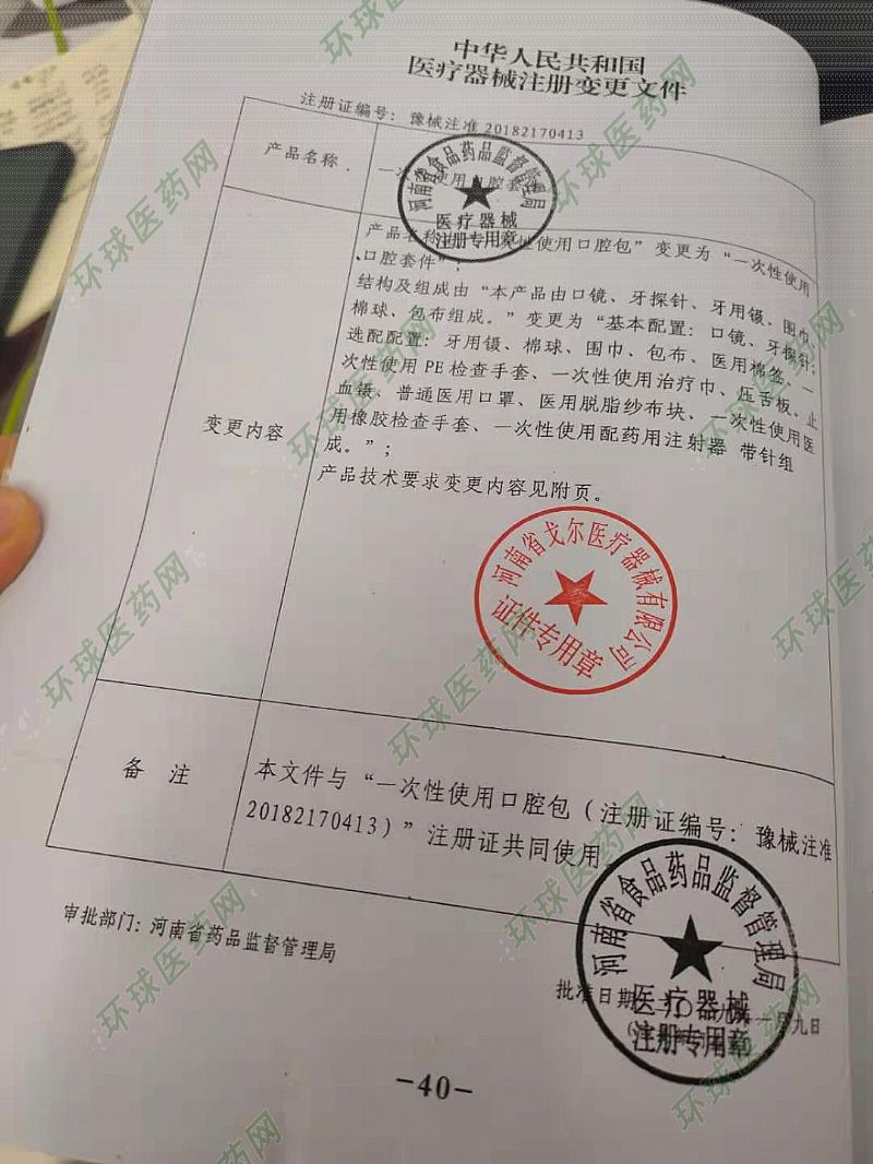 | 產(chǎn)品用途 | D:16638505889 產(chǎn)品名稱:一次性使用口腔套件 型號、規(guī)格:檢查護(hù)理型 結(jié)構(gòu)及組成:“基本配置:口鏡、牙探針選配配置:牙用鑷、棉球、圍巾、包布、醫(yī)用棉簽、一次性使用檢查手套、一次性使用治療巾、壓舌板、止血鑷、普通醫(yī)用口罩、醫(yī)用脫脂紗布塊、一次性使用醫(yī)用橡膠檢查手套、一次性使用配藥用注射器帶針組成!;產(chǎn)品技術(shù)要求變更內(nèi)容見附頁。 適用范圍:用于口腔檢查或護(hù)理時使用。 |