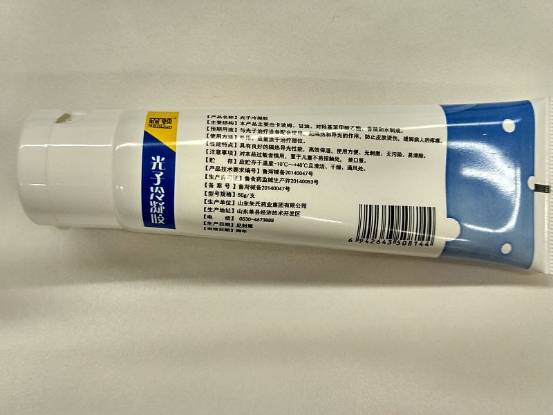 | 產(chǎn)品用途 | 【產(chǎn)品名稱】光子冷凝膠 【型號規(guī)格】50g/支 【產(chǎn)品描述】本產(chǎn)品主要由卡波姆、甘油、對羥基苯甲酸乙酯、香精和水制成。 【預(yù)期用途】與光子治療設(shè)備配合使用,起隔熱和導(dǎo)光的作用。 【注意事項(xiàng)】1、皮膚有炎癥、創(chuàng)面禁用;對本品過敏者慎用; 2、在使用中如果發(fā)生紅斑、濕疹,立即停用,紅斑、濕疹自行消失。 【性能特點(diǎn)】具有良好的隔熱導(dǎo)光性能,高效保濕,使用方便、***、無污染、易清除。 【貯存】應(yīng)貯存于溫度-10℃+40℃具清潔、干燥、通風(fēng)處。 |