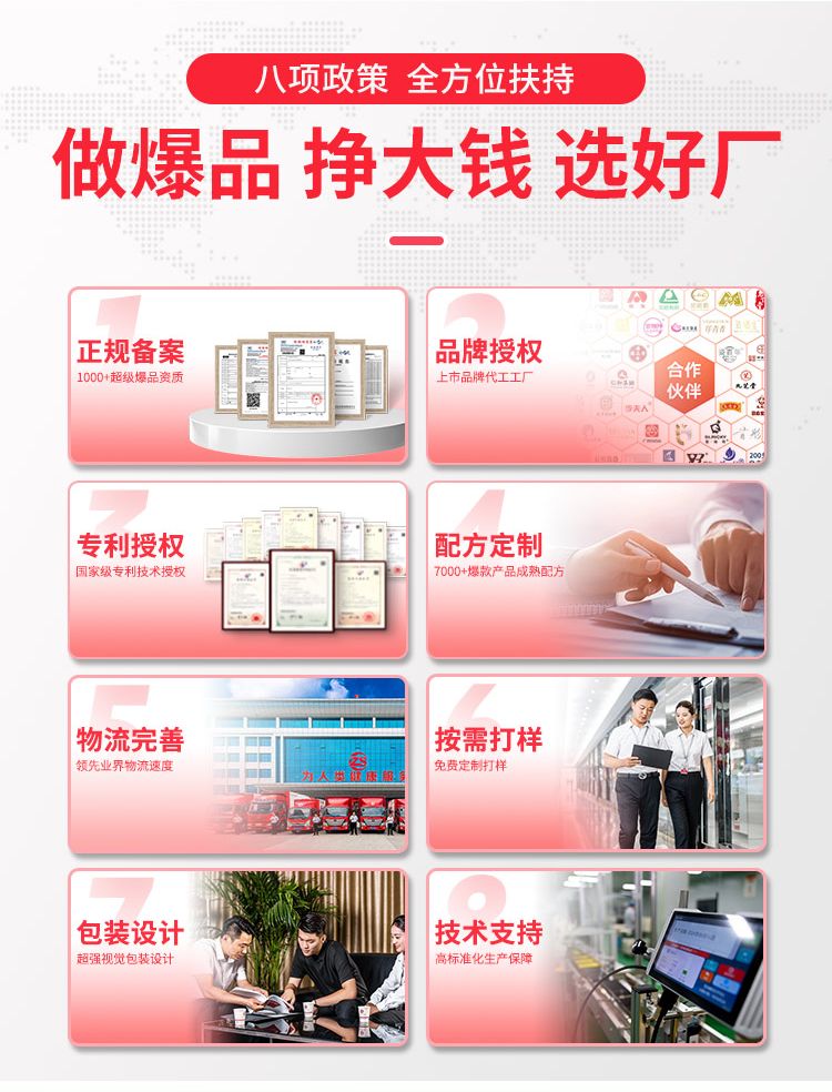 7、品類齊全:300多款成熟配方(妝字號(hào)、械字號(hào)、消字號(hào))免費(fèi)打樣