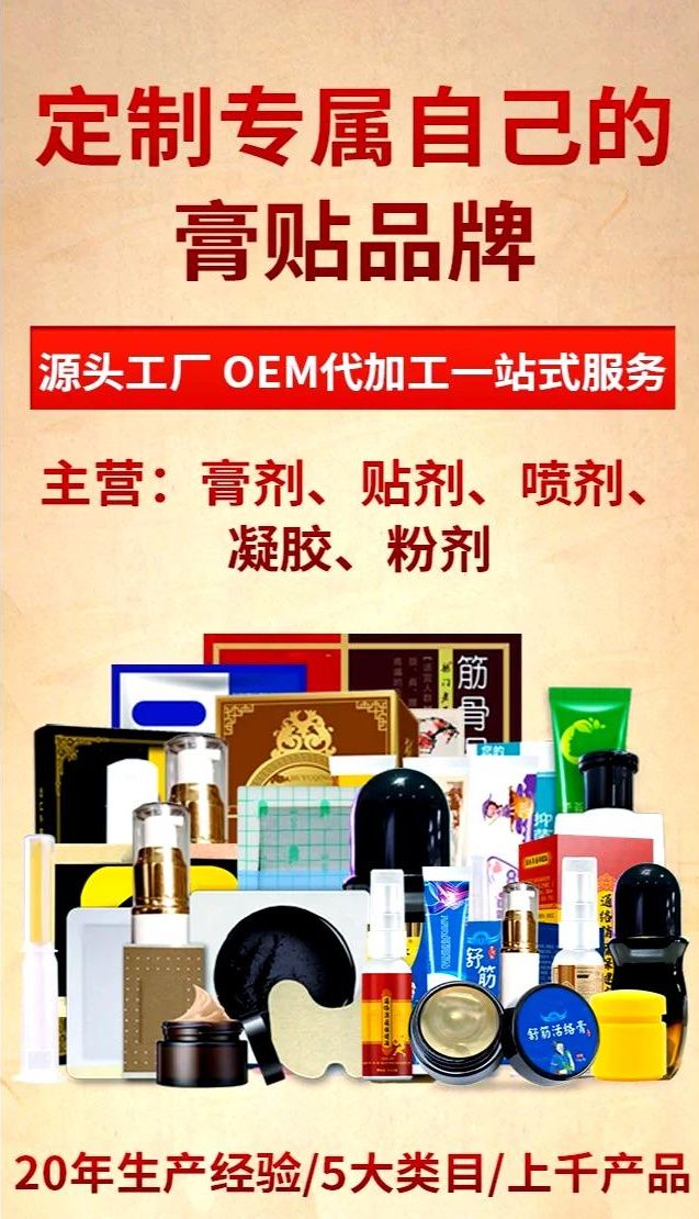 | 補(bǔ)充說明 | 注意事項:1市場大:膏藥的空白市場很大, 消費(fèi)群體廣大。每個人都可能用到膏藥,并且有嚴(yán)格的區(qū)域保護(hù)。 2經(jīng)營活:可以自己在電商、微信上賣,可以做直播、短視頻,也可以和各大醫(yī)院、藥店、美容店合作。 3品種多:膏藥有:骨科、兒科、婦科、癥狀類等;瘖y品有面膜、精華液、水乳霜、彩妝、套盒、洗沐護(hù)等。 4操作易:專業(yè)的客服團(tuán)隊每月定期回訪,根據(jù)不同市場提供指導(dǎo)、培訓(xùn)、廣告、促銷活動支持! 貯藏:干燥陰涼 禁忌:無 保質(zhì)期:兩年 備注:1、優(yōu)質(zhì)服務(wù):專業(yè)OEM服務(wù)團(tuán)隊一對一服務(wù),從設(shè)計到出貨全程專人跟進(jìn)。 2、出貨迅速:包裝定稿,專業(yè)生產(chǎn)團(tuán)隊可在10—15天內(nèi)交付發(fā)貨。 3、質(zhì)量**:從生產(chǎn)至出廠五道質(zhì)檢嚴(yán)格把關(guān),全自動四邊封口機(jī)器密封性更好,產(chǎn)品更美觀 4、權(quán)威認(rèn)證:國家FDA認(rèn)證的一類醫(yī)療器械文號,藥監(jiān)局可查,十萬級凈化標(biāo)準(zhǔn)生產(chǎn)車間,品質(zhì)有**。 5、經(jīng)驗(yàn)豐富:20年生產(chǎn)加工經(jīng)驗(yàn),已為上百個品牌提供服務(wù),產(chǎn)品已出口多個國家和地區(qū)。 6、產(chǎn)量充足:現(xiàn)代化生產(chǎn)車間、進(jìn)口全自動生產(chǎn)線,日產(chǎn)量100萬片。 7、品類齊全:300多款成熟配方(妝字號、械字號、消字號)免費(fèi)打樣 |