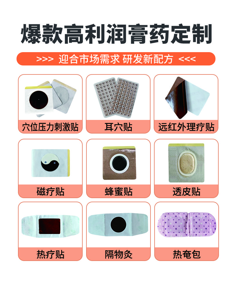 | 補充說明 | 注意事項:1市場大:膏藥的空白市場很大, 消費群體廣大。每個人都可能用到膏藥,并且有嚴格的區(qū)域保護。 2經(jīng)營活:可以自己在電商、微信上賣,可以做直播、短視頻,也可以和各大醫(yī)院、藥店、美容店合作。 3品種多:膏藥有:骨科、兒科、婦科、癥狀類等;瘖y品有面膜、精華液、水乳霜、彩妝、套盒、洗沐護等。 4操作易:專業(yè)的客服團隊每月定期回訪,根據(jù)不同市場提供指導(dǎo)、培訓(xùn)、廣告、促銷活動支持! 6產(chǎn)品好:20年膏藥生產(chǎn)經(jīng)驗,膏藥效果經(jīng)得住考驗,終端客戶好評如潮! 貯藏:干燥陰涼 禁忌:無 保質(zhì)期:兩年 備注:1、優(yōu)質(zhì)服務(wù):專業(yè)OEM服務(wù)團隊一對一服務(wù),從設(shè)計到出貨全程專人跟進。 2、出貨迅速:包裝定稿,專業(yè)生產(chǎn)團隊可在10—15天內(nèi)交付發(fā)貨。 3、質(zhì)量**:從生產(chǎn)至出廠五道質(zhì)檢嚴格把關(guān),全自動四邊封口機器密封性更好,產(chǎn)品更美觀 4、權(quán)威認證:國家FDA認證的一類醫(yī)療器械文號,藥監(jiān)局可查,十萬級凈化標準生產(chǎn)車間,品質(zhì)有**。 5、經(jīng)驗豐富:20年生產(chǎn)加工經(jīng)驗,已為上百個品牌提供服務(wù),產(chǎn)品已出口多個國家和地區(qū)。 6、產(chǎn)量充足:現(xiàn)代化生產(chǎn)車間、進口全自動生產(chǎn)線,日產(chǎn)量100萬片。 7、品類齊全:300多款成熟配方(妝字號、械字號、消字號)免費打樣 |